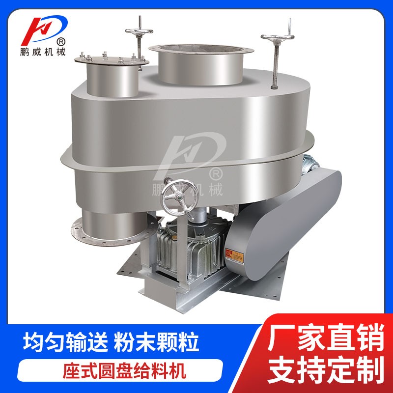 13781984528圓盤給料機其結構主體是繞垂直軸旋轉的圓盤(直徑一般在3m以下,轉速不超過10r/min)。圓盤中部有一位于接料倉下口而高度可調的下料套筒。物料從下料套筒和圓盤的間隙中漏散出來,并被刮板將物料從圓盤上刮落下來。喂料量可通過改變下料套筒和圓盤的間隙大小和卸料位置來調整。同時設有觀察窗口,可隨時觀測物料的喂送情況及設備的運行情況。
