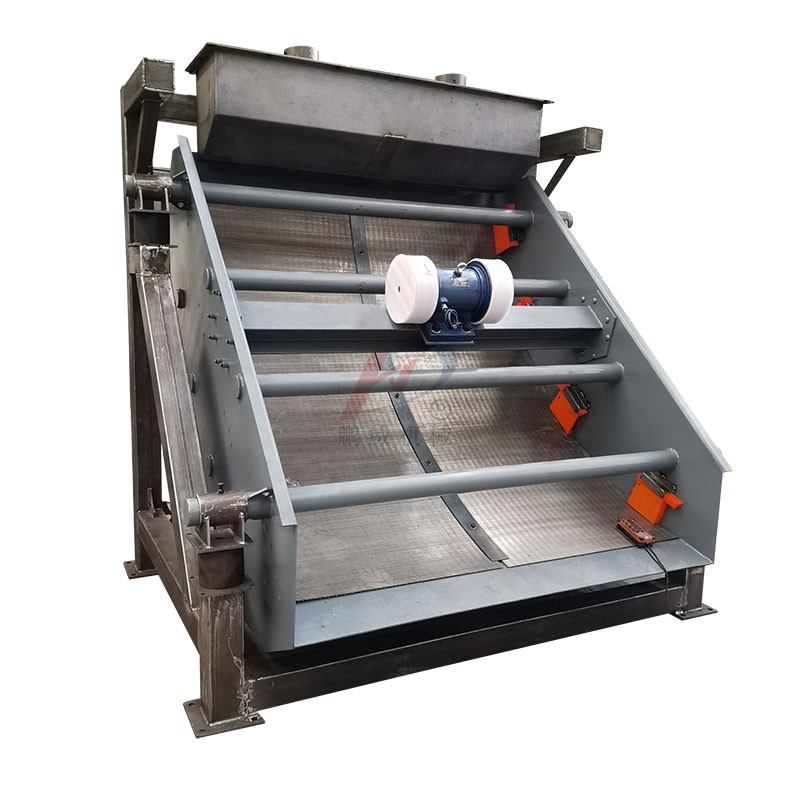 工作原理及構造:水力篩主體由楔形鋼棒制成的不銹鋼弧形篩面,表面平整光滑,待處理廢水通過設備上方布水裝置均勻分布到傾斜篩面上,由于篩網表面間隙小、平滑,背面間隙大,排水順暢 不易阻塞、固態物質被截留,過濾后的水從篩板縫隙中流出,同時在水力作用下,固本物質被推到篩板下端排出,從而達到固液分離目的。