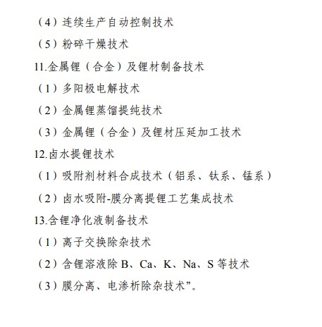 三是修改1項限制類技術條目,即有色金屬冶金技術,包括:新增鋰輝石提鋰生產碳酸鋰技術、鋰輝石提鋰生產氫氧化鋰技術、金屬鋰(合金)及鋰材制備技術、鹵水提鋰技術、含鋰凈化液制備技術等5條控制要點,修改提取金屬鎵技術控制要點。這是根據技術發展變化形勢,對現有限制類技術做出的調整。