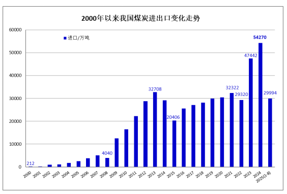 海關總署9月8日公布的數據顯示,2025年8月份,全國煤炭進口4273.7萬噸,較去年同期的4584.4萬噸減少310.7萬噸,同比下降6.8%;較7月份的3560.9萬噸增加712.8萬噸,環比增長20.0%。