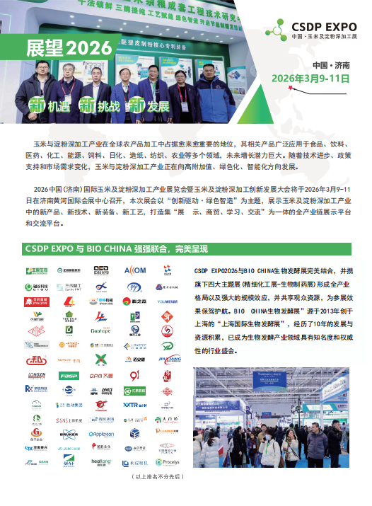 同期活動:舉辦 2026 中國玉米及淀粉深加工創新發展大會,涵蓋政策解讀、技術前沿探討、市場對接、投資機會分析等內容。