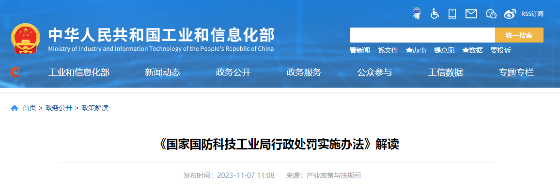 2023年10月20日,工業和信息化部公布了《國家國防科技工業局行政處罰實施辦法》(工業和信息化部令第65號,以下簡稱《辦法》),對現行《國防科學技術工業委員會行政處罰實施辦法(試行)》(以下簡稱《辦法(試行)》)進行了修訂。為了更好地理解和執行《辦法》,工業和信息化部產業政策與法規司負責同志對《辦法》進行了解讀。