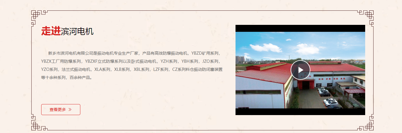 新鄉市濱河電機有限公司位于河南省新鄉市牧野區衛河北岸,廠區占地約2萬余半方米,建筑面積約13000平方米。公司已通過 1SO9001:2015國際質量管理體系認證、歐盟CE認證、CCC國家強制性產品認證、CQC產品認證、防爆3C認證,取得了多品種的產品防爆合格證。公司擁有加工中心、鉆攻中心、數控車床、數控鉆床等數十臺大型先進加工設備,機械加工全部實現數控化,有效的保證了加工零件的精度和一致性,公司配備了真空絕緣處理設備,防爆殼體水壓測試機、電機綜合測試系統,同時實施了先進信息化言理系統,對每一個生產環節,均實行嚴格的品質控制,為濱河公司實現產品高品質、高需求奠定了堅實的基礎。公司產品多次與國內重點工程配套,并出口歐盟和俄羅斯、澳大利亞、印尼、埃及、越南等國,與國外多家公司常年合作。新鄉市濱河電機有限公司在全國擁有二十余個銷售網點,可以就近對用戶提供選型、驗貨、配件供應等所需服務,并可及時對售后問題進行處理,使用戶獲取有關振動電機的最優解決方案。