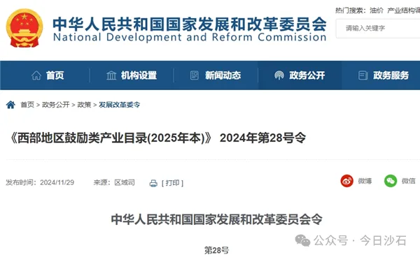 日前,經國務院同意,國家發展改革委修訂出臺《西部地區鼓勵類產業目錄(2025年本)》(以下簡稱《目錄(2025年本)》),報請國務院審定同意后發布實施,自2025年1月1日起施行。此次修訂出臺的《目錄(2025年本)》旨在因地制宜發展新興產業,加快西部地區產業轉型升級,促進產業優化布局,推動形成大保護、大開放、高質量發展的西部大開發新格局。